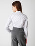 Белая блузка с длинным рукавом, выполненная из ткани с мелким оригинальным рисунком, привнесет в образ школьницы индивидуальность. Актуальный полуприлегающий силуэт, удлиненная линия спинки, модная форма воротника делают блузку незаменимой для создания стильного делового образа девочки.