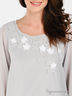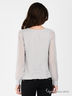 Детали: круглый вырез; длинный рукав с манжетой на пуговице; низ изделия на резинке; полочка расшита тканевыми цветами