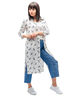 Блузка свободного кроя. Отложной воротничок. Застёжка на пуговицы. По бокам разрезы.