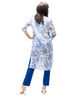 Блузка свободного кроя. Отложной воротничок. Застёжка на пуговицы. По бокам разрезы.