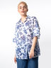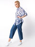 Блузка свободного кроя. Отложной воротничок. Застёжка на пуговицы. По бокам разрезы.