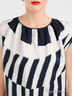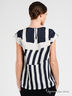 Оригинальная блуза с коротким рукавом и круглым вырезом. Застегивается на пуговицу сзади, декорирована контрастным принтом. Отличный вариант для создания повседневного образа.