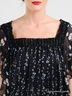 Элегантная блуза прямого силуэта с вырезом каре и коротким рукавом. Окантовка выреза на резинке. Декорирована оригинальным принтом. Отличный вариант на каждый день.