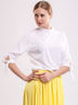Блуза полупрозрачная с завязками на рукавах, воротник фиксируется кнопками на плече.