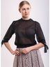 Блуза полупрозрачная с завязками на рукавах, воротник фиксируется кнопками на плече.