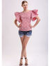 Блуза с большими воланами на рукавах. Застегивается на молнию сбоку.