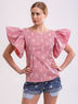 Блуза с большими воланами на рукавах. Застегивается на молнию сбоку.