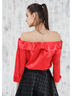 Блуза со спущенными плечами, спереди на пуговицах.