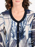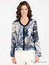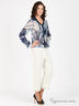Детали: округлый вырез горловины, длинный рукав посажен на манжету, застежка на пуговицы, сборки, принты