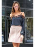 Изящная блуза прямого кроя с длинным рукавом, фиксированным резинкой, декорированная невесомым кружевом. Прекрасное сочетание тканей и открытые плечики придают изделию шарма и женственности.