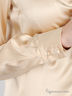 Стильная блуза из легкого, мягкого, слабоэластичного атласа. Стояче-отложной ворот. Застежка на планку с пуговицами. Длинные рукава с манжетами на пуговицах. На полочках заложены эффектные драпировки. Прекрасно будет сочетаться с классическими брюками и юбками. Отличный вариант для создания торжественного образа!