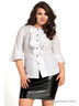 Блуза с рукавами 3/4 и округлым вырезом горловины. Модель приталенного кроя выполнена из качественного материала привлекательной расцветки декорирована рюшей. Спереди - застежка на пуговицы. Отличный вариант на каждый день.