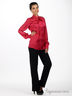 Детали: ворот-стойка дополнен шелковистой лентой; длинный рукав с манжетой на пуговицах; V-образный вырез с декоративными пуговицами; застегивается на молнию сбоку