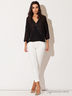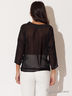 Прекрасная блузка свободного кроя, с рукавами в три четверти и V- образным вырезом горловины. Модель будет удачно гармонировать с различными элементами гардероба.