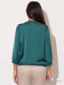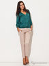 Очаровательная блузка с V-образным вырезом горловины и длинными рукавами. Дополнено изделие застежкой на кнопки и накладными карманами. Модель будет прекрасно гармонировать с любыми предметами гардероба.