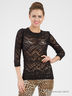 Чудесная кофточка полуприталенного силуэта с округлым вырезом горловины и рукавами 3/4. Модель декорирована кружевом. Модель будет удачно гармонировать с различными элементами гардероба.