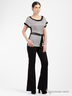 Кофта с короткими рукавами и округлым вырезом горловины. Изделие дополнено поясом на талии контрастного цвета. Прекрасный вариант на каждый день.