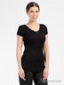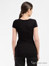 Блуза с короткими рукавами и округлым вырезом горловины. Модель однотонной расцветки. Спереди изделие украшено декоративными элементами.