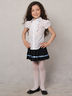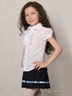 Великолепная детская блузка в горох. Модель выполнена с круглым воротничком, рукавом-фонарик, спереди украшена красивой рюшей. Ткань блузки великолепно стирается и гладится.