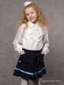Белая блузка с длинным рукавом и отложным воротником. На планке-полочки нашит волан. Под воротником стойкой пришит цветок. Нарядный и удобный вариант для юной принцессы.