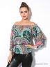 Легкая, шифоновая блузка с рукавом 3/4. Пояс на резинке. Орнамент -яркая ассиметрия. Изделие выполнено из качественного материала привлекательной расцветки. Отличный вариант на каждый день.