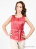 Стильная женская блуза выполнена из шелковистого материала. Изделие без рукавов с округлым вырезом горловины. Талия подчеркивается поясом.