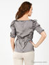 Стильная женская блуза выполнена из шелковистого материала. Изделие с округлым вырезом горловины, короткие рукава с буфами, застежка на пуговицы. Талия подчеркивается пуговицами.