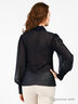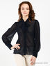 Стильная женская блуза выполнена из полупрозрачного, приятного на ощупь материала. Изделие с отложным воротом который плавно переходит в ленты, застежка на пуговицы. Широкие манжеты рукавов с застежкой на пуговицы.