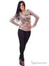 Блуза прилегающего силуэта с фигурной горловиной, обработанной окантовкой. Рукав втачной, реглан, двухшовный. Спинка со средним швом. Перед состоит из двух деталей. Драпировка по переду достигнута конструктивным методом.