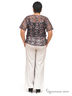 Блуза прямого силуэта, с круглой горловиной, с цельнокроеными короткими рукавами. Горловина обработана окантовкой. Спинка, перед и рукава цельнокроеные. Низ блузы и низ рукавов подшит швом в подгибку с закрытым срезом .