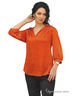 Блуза женская полуприлегающего силуэта из шелковой ткани. Воротник втачной, отложной. Рукав 3/4 на притачном манжете со сборкой по шву притачивания манжета. Спинка и перед на двойной кокетке, по швам притачивания кокетки на участках сборка. Перед со средним швом.