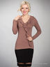 Изящная и очень женственная модель прилегающего силуэта с V-образным вырезом и длинными рукавами. Блузка украшена изящной рюшей по горловине и по длине изделия. Идеальный вариант для истинных леди.