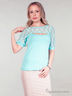 Оригинальная блузка облегающего силуэта, с короткими гипюровыми рукавами. Модель выполнена из легкого материала актуального цвета. Отлично будет сочетаться с различными по фактуре и фасону вещами. На груди вырез капелька.