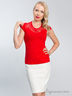 Блуза женская приталенного силуэта, длинной до середины бедра. Спинка и полочка состоят из основной части и фигурной кокетки, выполненной из гипюра в тон основной ткани. Круглый вырез горловины обработан кантом. Втачной рукав-крылышко.
