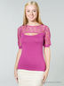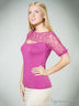Оригинальная блузка облегающего силуэта, с короткими гипюровыми рукавами. Модель выполнена из легкого материала актуального цвета. Отлично будет сочетаться с различными по фактуре и фасону вещами. На груди вырез капелька.