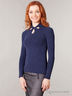 Блуза женская приталенного силуэта. Спина и полочка цельнокроеные, без втачек и рельефных швов. Горловина оформлена втачным воротником - стойкой, переплетенным с тремя фигурными вырезами - "капелька". Рукав втачной, длинный, одношовный.