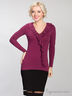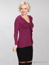Изящная и очень женственная модель прилегающего силуэта с V-образным вырезом и длинными рукавами. Блузка украшена изящной рюшей по горловине и по длине изделия. Идеальный вариант для истинных леди.
