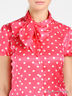 Детали: застегивается на пуговицы; ворот-стойка переходит в оригинальные завязки; рукав-фонарик на резинке; принт - горох