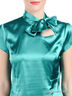 Детали: оригинальный короткий рукав; ворот-стойка завязывается на атласные ленты