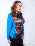 Яркая блуза из тонкого материала. Стояче-отложной ворот. Застежка на пуговицы. Длинные рукава "летучая мышь". Полочка выполнена из глянцевой ткани с оригинальным принтом.