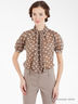 Оригинальная блуза свободного кроя. Выполнена из шелковистого прозрачного материала. Воротник-стойка с оригинальным вертикальным воланом. Короткие рукава-фонарики с манжетами на пуговице. Сзади застежка на пуговицы. Прекрасный вариант для офиса и прогулок!