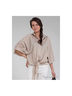 Блуза с отложным воротником, по переду планка на пуговицах, длинные рукава. На манжете, силуэт - летучая мышь, завязывается на пояс.