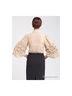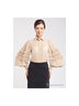 Стильная блуза прямого кроя с отложным воротом и застежкой на пуговицы. Широкий рукав 7/8 декорирован рюшами. Хороший вариант для прогулок.