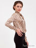 Элегантная блуза приталенного силуэта выполнена из шелковистой ткани. Ворот-Аскот, застежка ан пуговицы, длинный прямой рукав, полочка декорирована рюшей. Отлично подходит к брюкам и юбкам классического кроя.