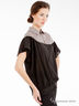 Блуза свободного кроя под горло с кокеткой. Низ на эластичной резинке.