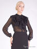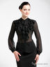 Великолепная блуза из тонкой ткани с рисунком. Длинный рукав на манжете, застежка на пуговицы, на полочке роскошное жабо. Отличный вариант для прогулок и выходов.