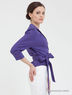 Блуза с цельновыкроеным рукавом 3/4, отложной воротник стойка на запахе, с завязывающимся поясом.