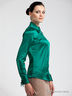 Атласная блуза приталенного силуэта. Отложной ворот, застежка на пуговицы, длинный рукав с манжетами, дополненными декоративными элементами. Подходит для торжественных случаев.