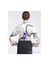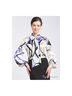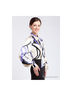 Модная блуза с длинным рукавом и воротом-стойкой, которая переходит в ленты, завязывающиеся в бант. Манжеты на пуговице. Изделие декорировано крупным геометрическим узором. Будьте неповторимой!