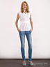 Яркое стеганое пальто на синтепоне, с воротником-стойкой и отстегивающимся капюшоном, декорированное небольшой нашивкой на рукаве. Модель с потайной кулиской на талии, застежкой на молнию с защитой подбородка, хлястиками для регулировки объема на талии и прорезными карманами на молнии по бокам.